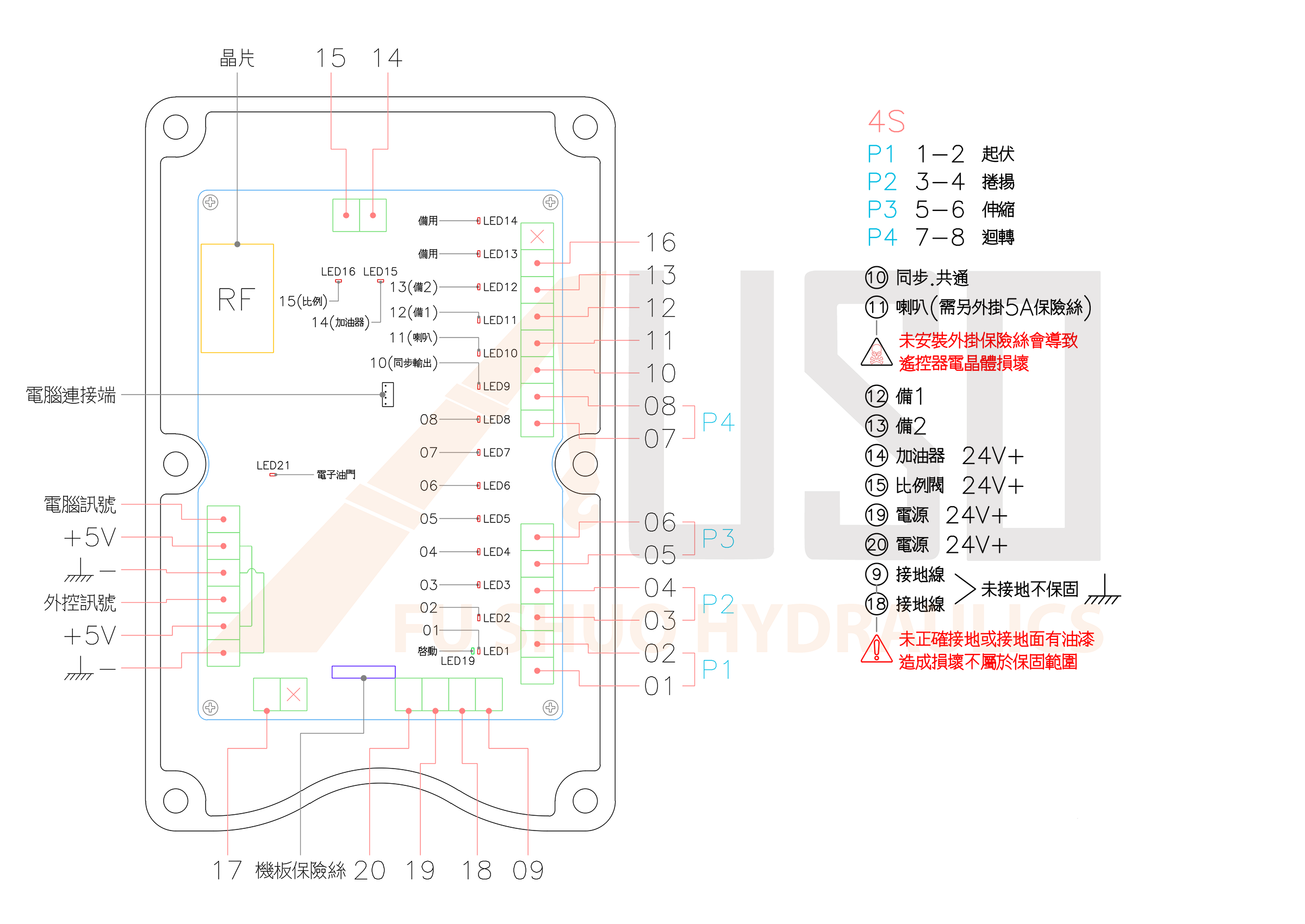 遙控主機900B接線圖 *請注意!未依照安裝指南規範將會失去產品保固