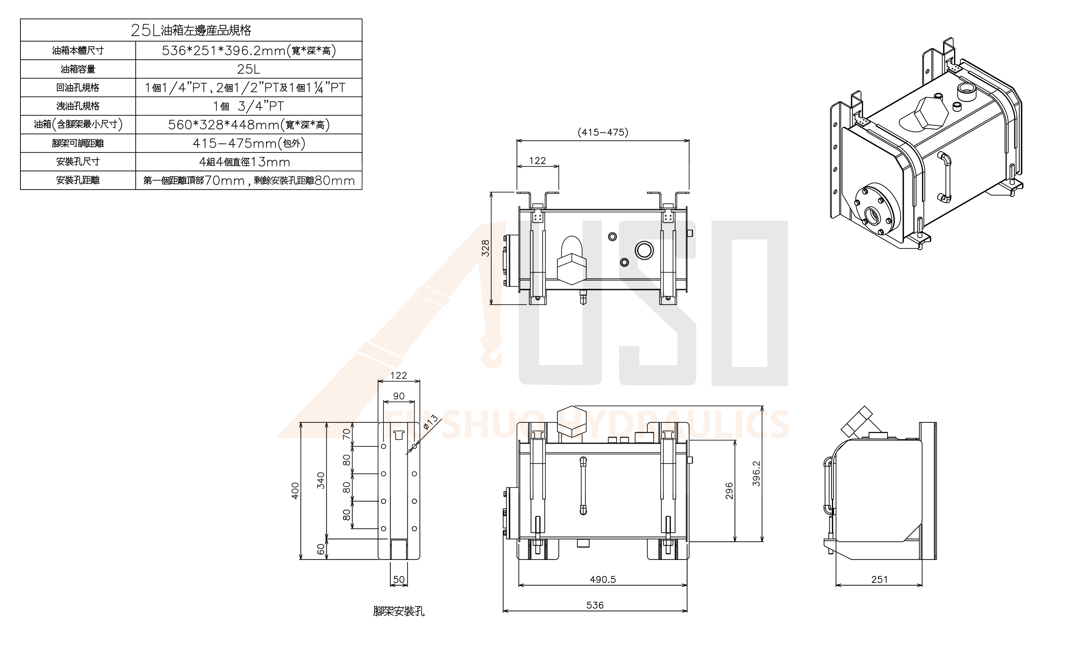 安裝孔尺寸:4個直徑13mm