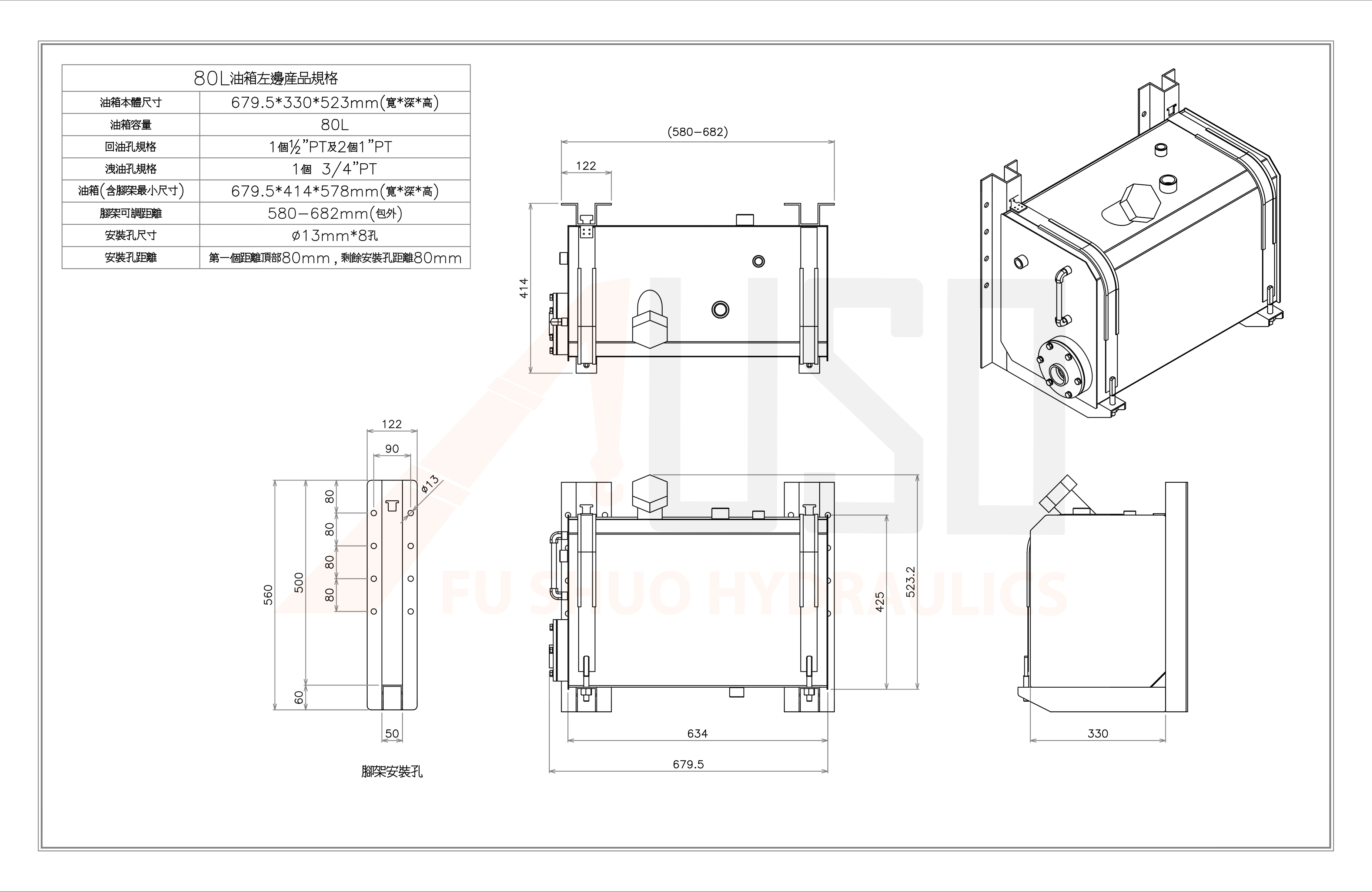 安裝孔距離:第一個距離頂部80mm,剩餘安裝孔距離80mm