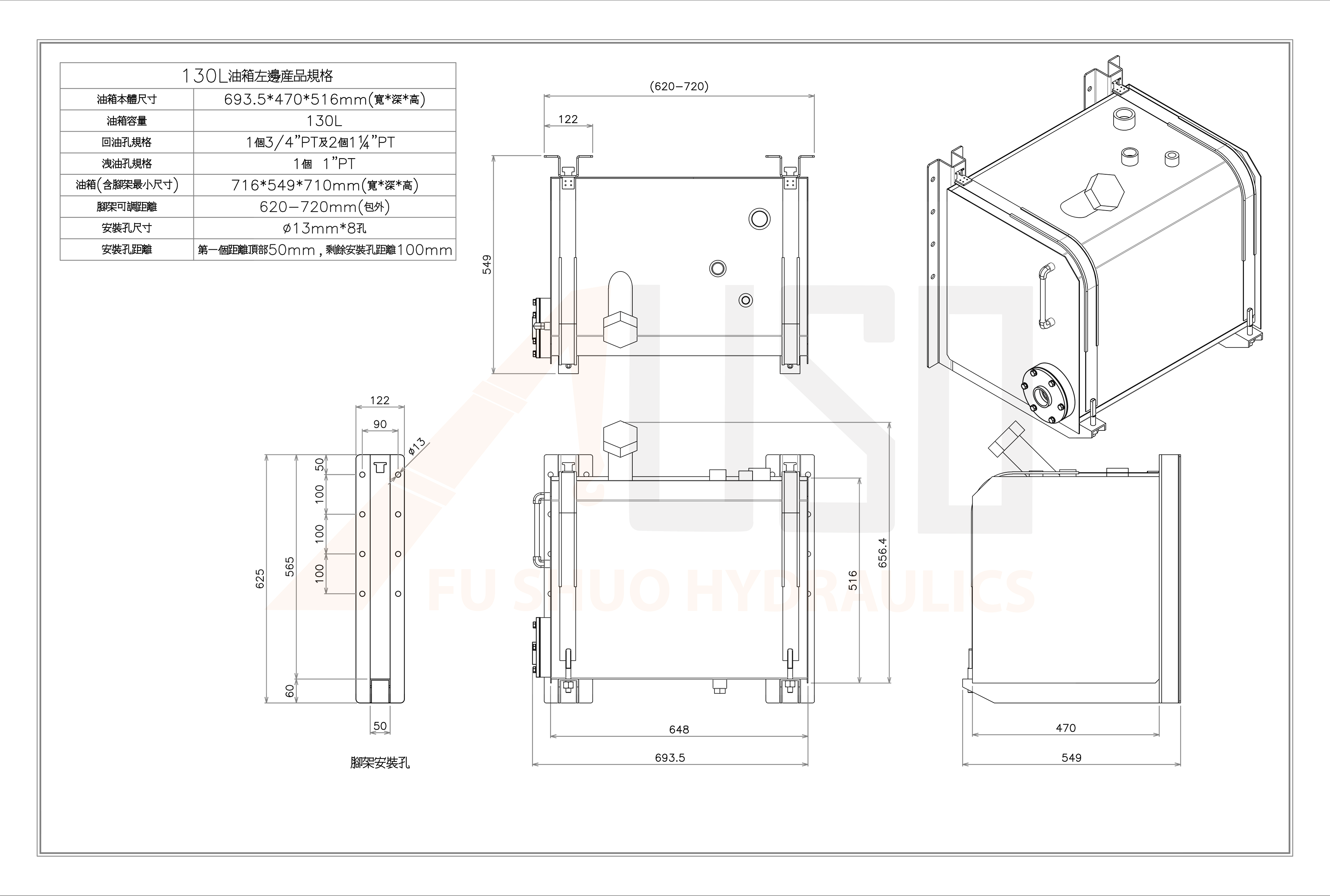 安裝孔距離:第一個距離頂部50mm,剩餘安裝孔距離100mm