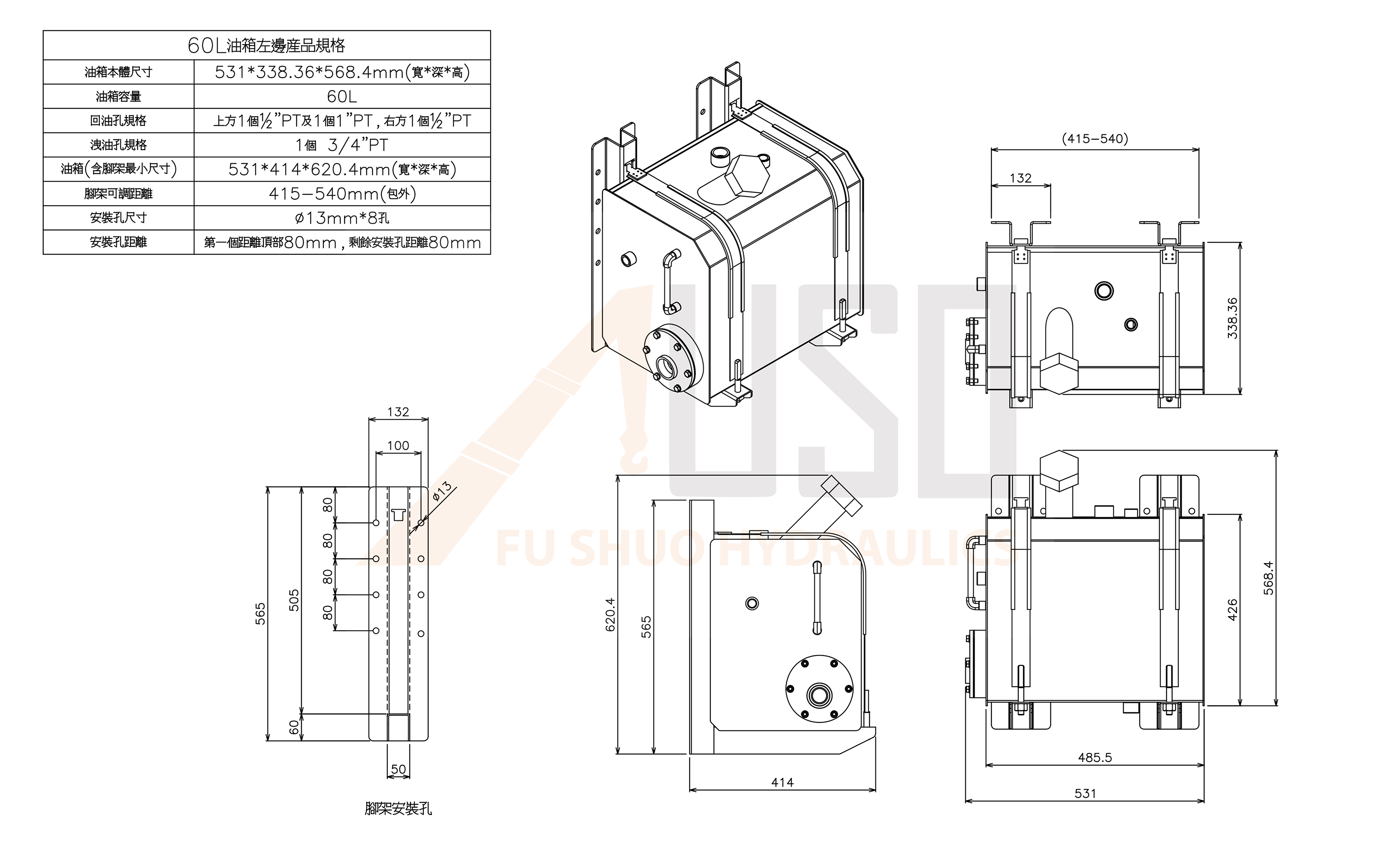 安裝孔尺寸:4個直徑13mm