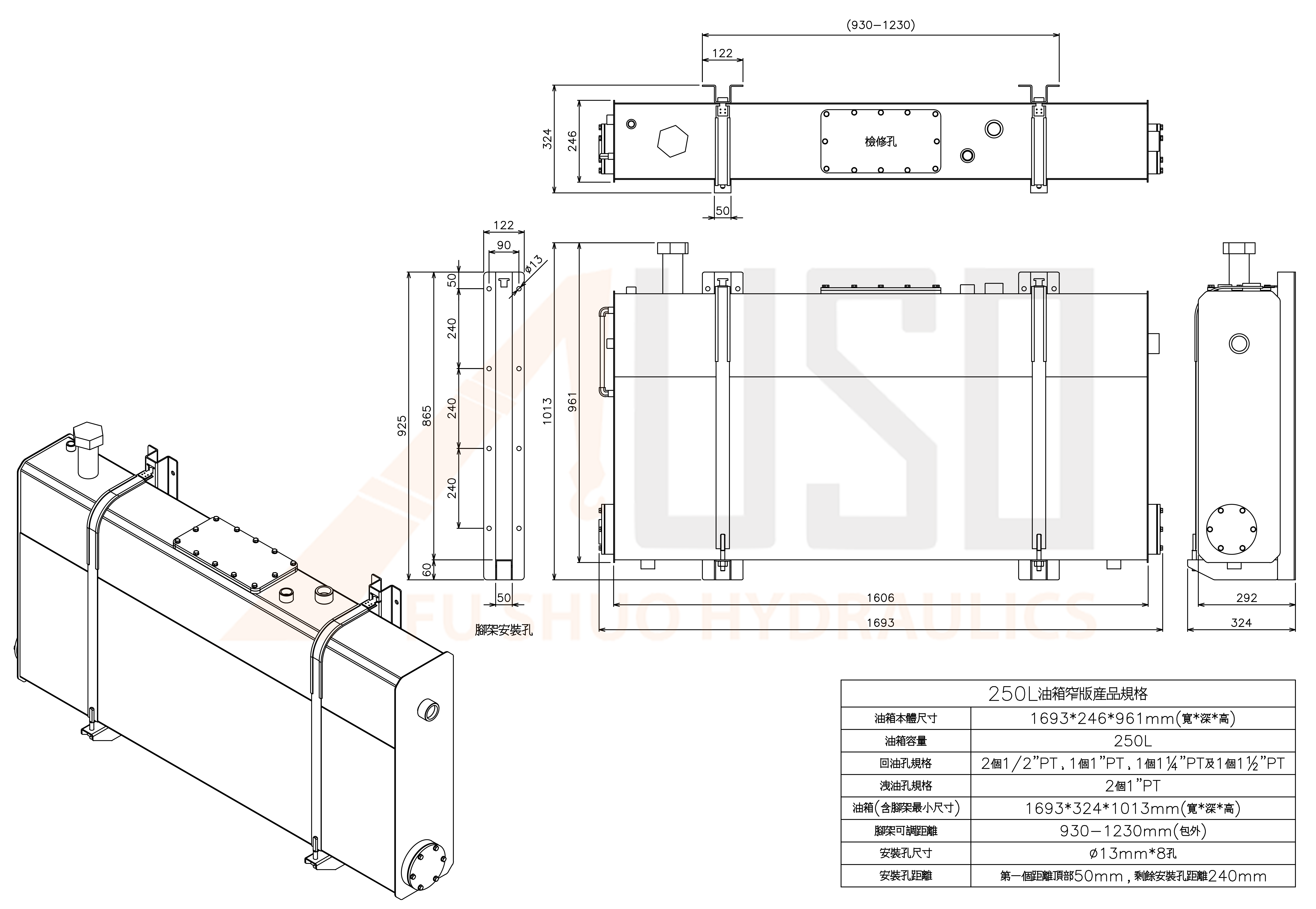 安裝孔距離:第一個距離頂部50mm,剩餘安裝孔距離240mm