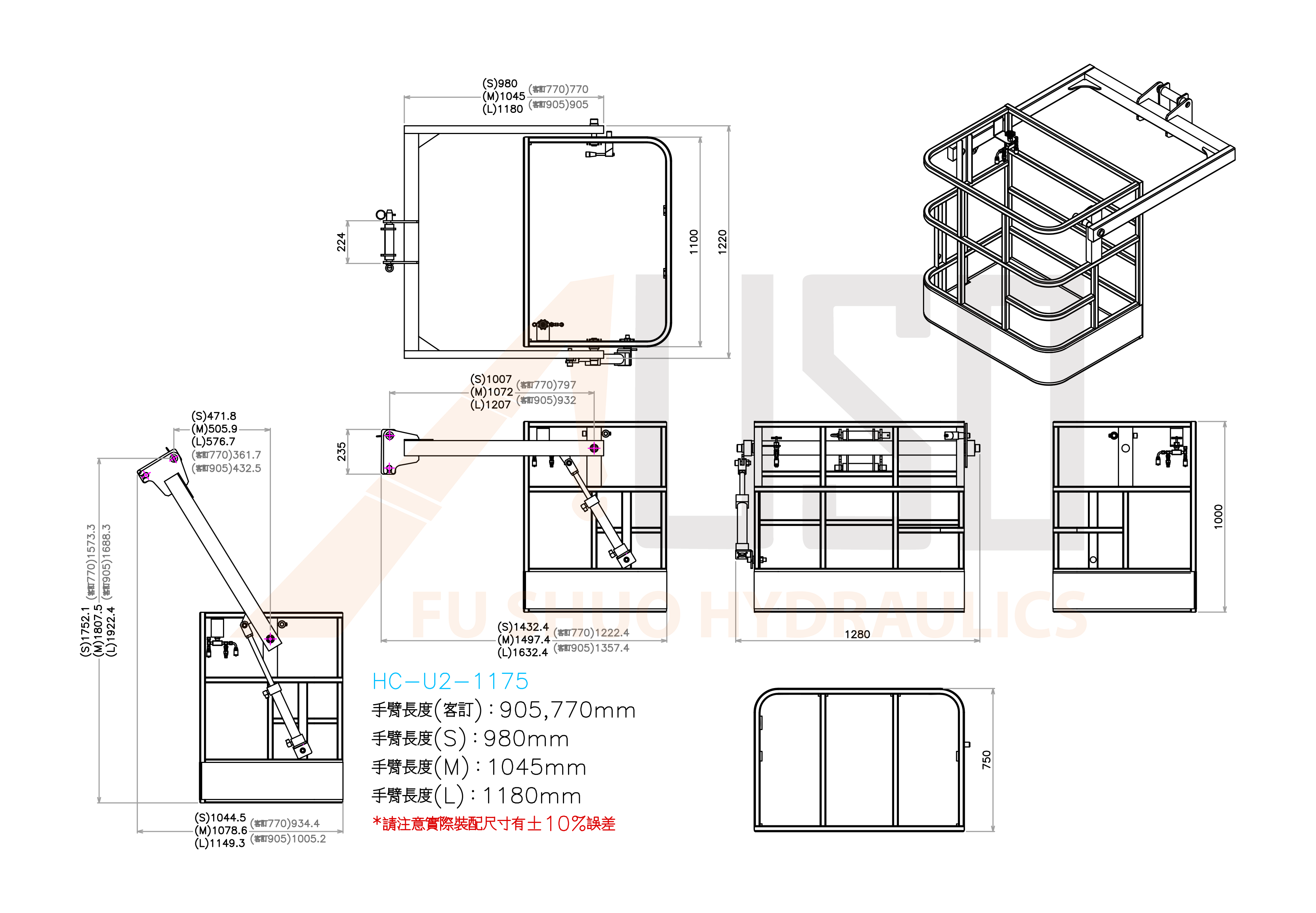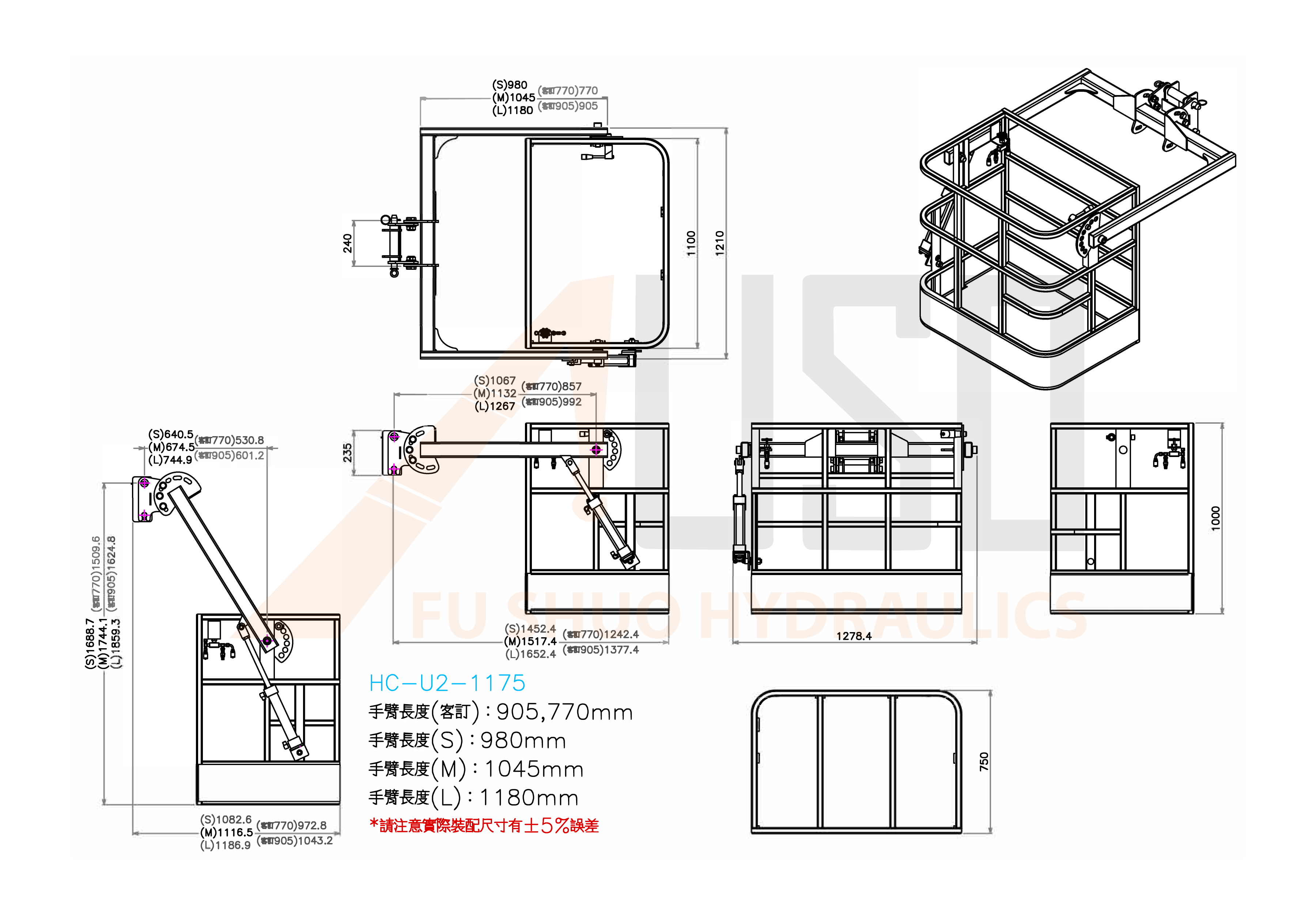 雙人ㄇ型手臂油壓吊籃(大型)